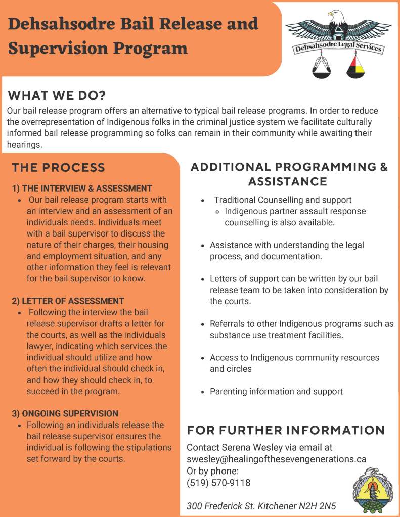 Our Dehsahsodre Legal Services works closely with the other services that are provided within The Healing of The Seven Generations to provide a holistic and wrap-around set of services for our First People’s (FNMI) and continues to grow with the changing needs for programs.